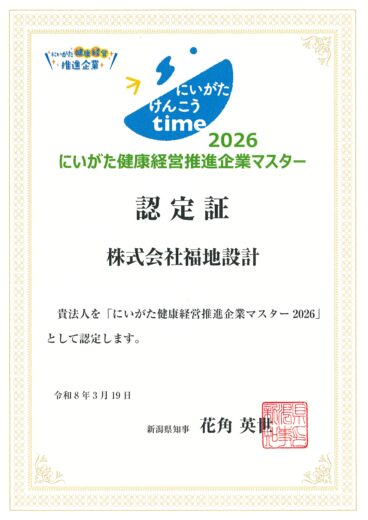 この度、昨年に引き続き、健康経営の取り組みをより積極的に行っている企業として「にいがた健康経営推進企業マスター2026」に認定されました。